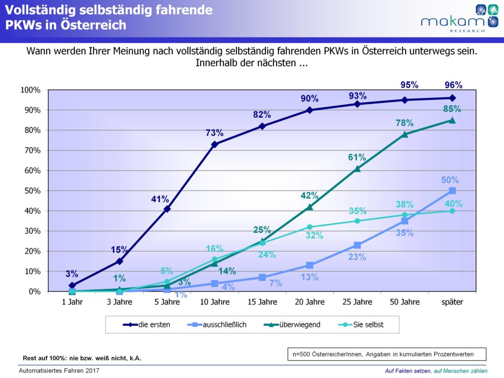Wie realistisch sind derartige Szenarien aus Sicht der Bevölkerung? MAKAM Research hat in einer aktuellen Studie 500 Österreicher und Österreicherinnen rund ums Thema automatisiertes Fahren befragt.