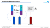 Die Nutzung des motorisierten Verkehrs (insbesondere des Autos) bleibt dabei relativ stabil: Wer angab, ein Verkehrsmittel seltener zu nutzen, tut das in knapp 40% der Fälle beim motorisierten Individualverkehr (MIV); in 36% der Fälle wird er hingegen bei jenen häufiger genutzt, die eine Zunahme in einem Verkehrsmittel hatten (s. unten).