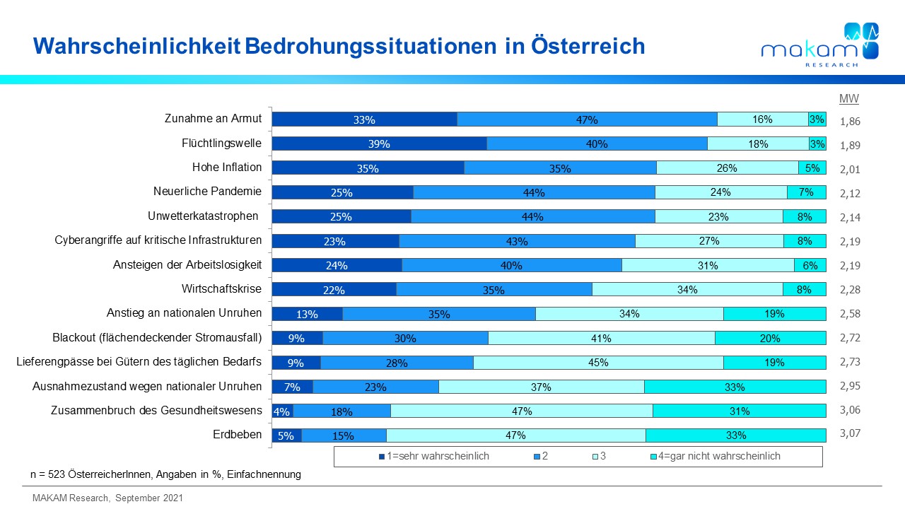 MAKAM Research hat im Rahmen einer aktuellen Forschung die ÖsterreicherInnen zur aktuellen Situation und möglichen Bedrohungsszenarien befragt.