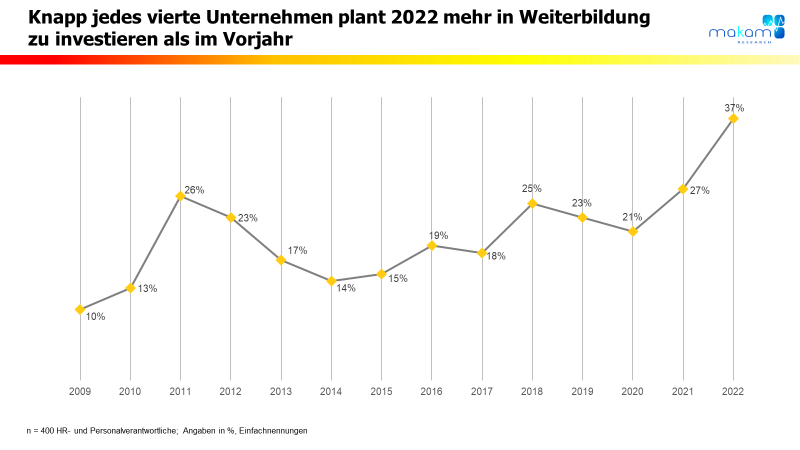 Neues Hoch in der Budgetplanung für Weiterbildung seit Beginn der Auswertungen 2009