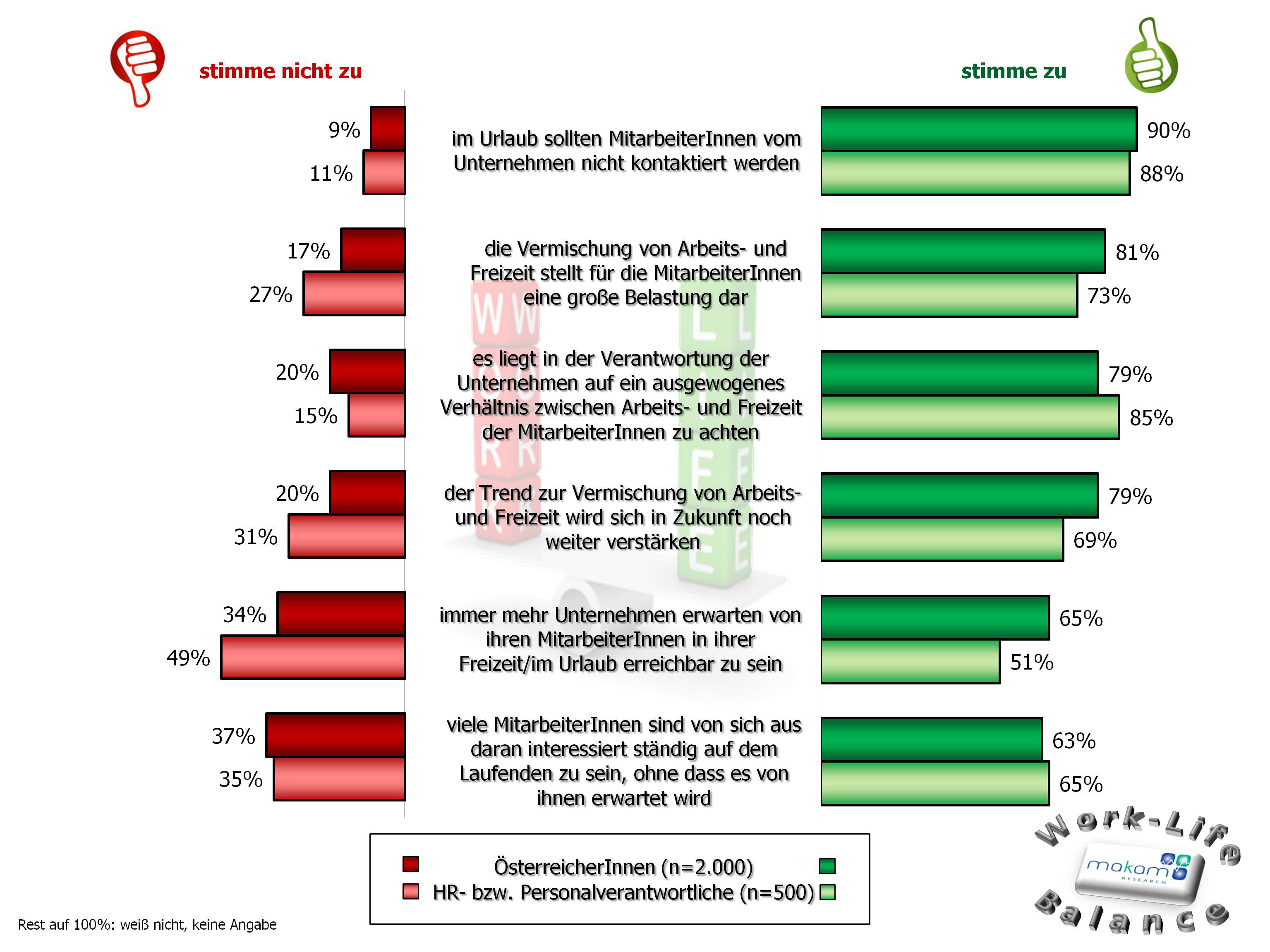 Einigkeit zwischen der österreichischen Bevölkerung und PersonalistInnen herrscht dahingehend, dass eine zu große Vermischung von Arbeits- und Freizeit für die MitarbeiterInnen eine große Belastung darstellen könnte.
